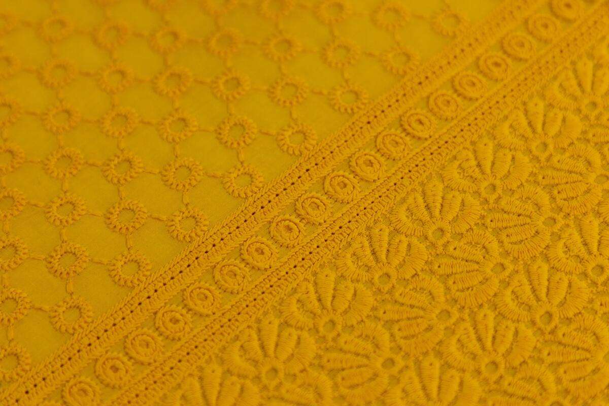Cotton is a soft, fluffy, natural fiber that is used in the apparel industry. It can be woven or knitted. Cotton embroidery fabrics can be used for designing a plethora of fabrics. The material is finely spun and highly twisted, that makes the cotton fabric durable and strong. Cotton Embroidery is smooth and breathable textile. |